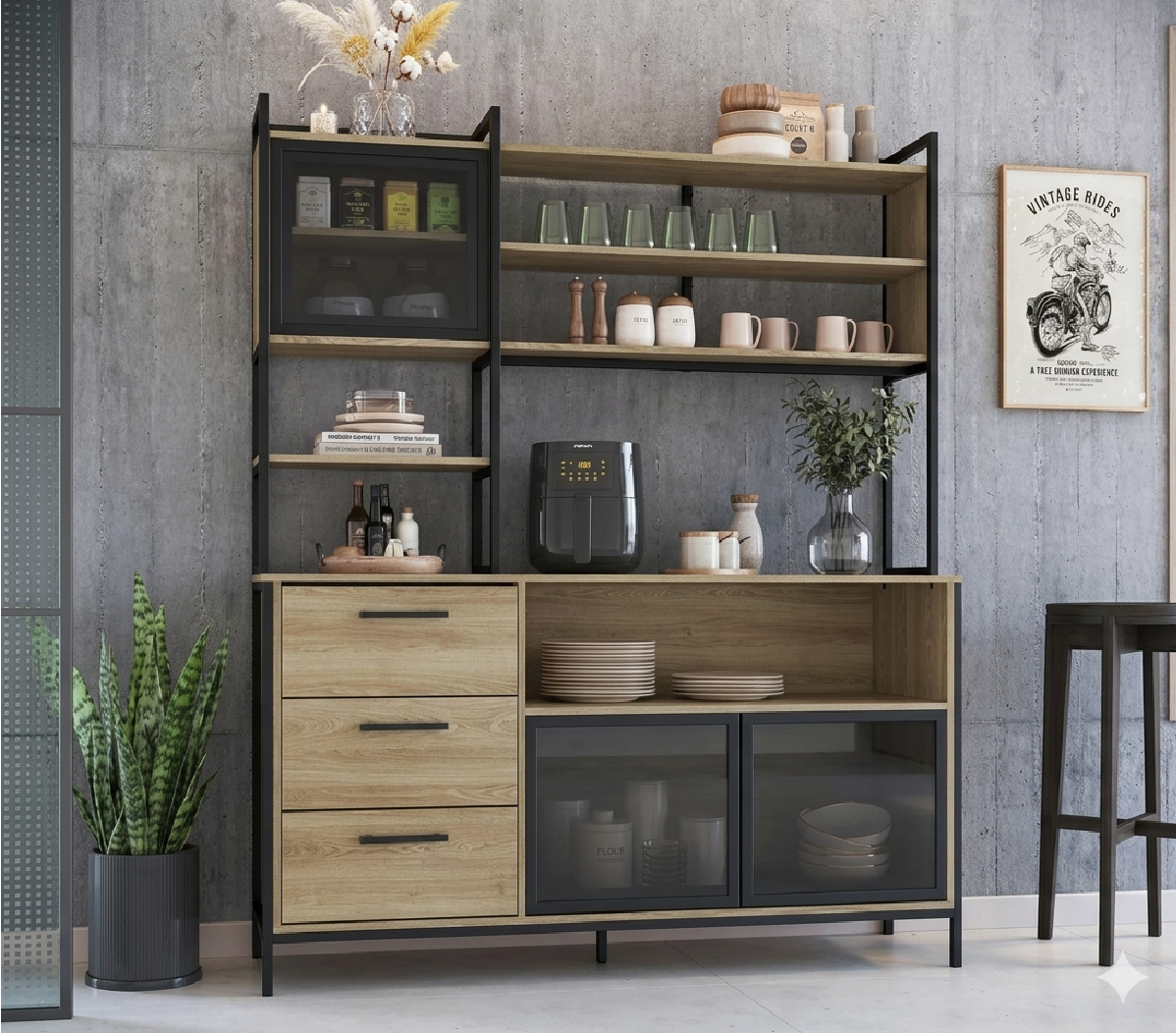 Mueble De Cocina Multiuso 2 Puertas 4 Estantes