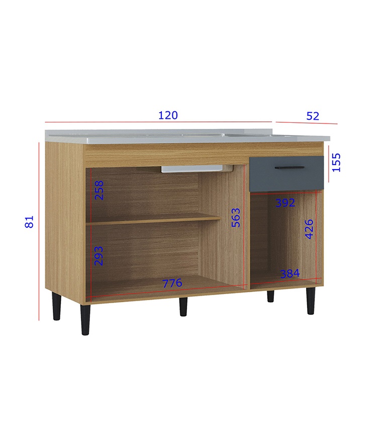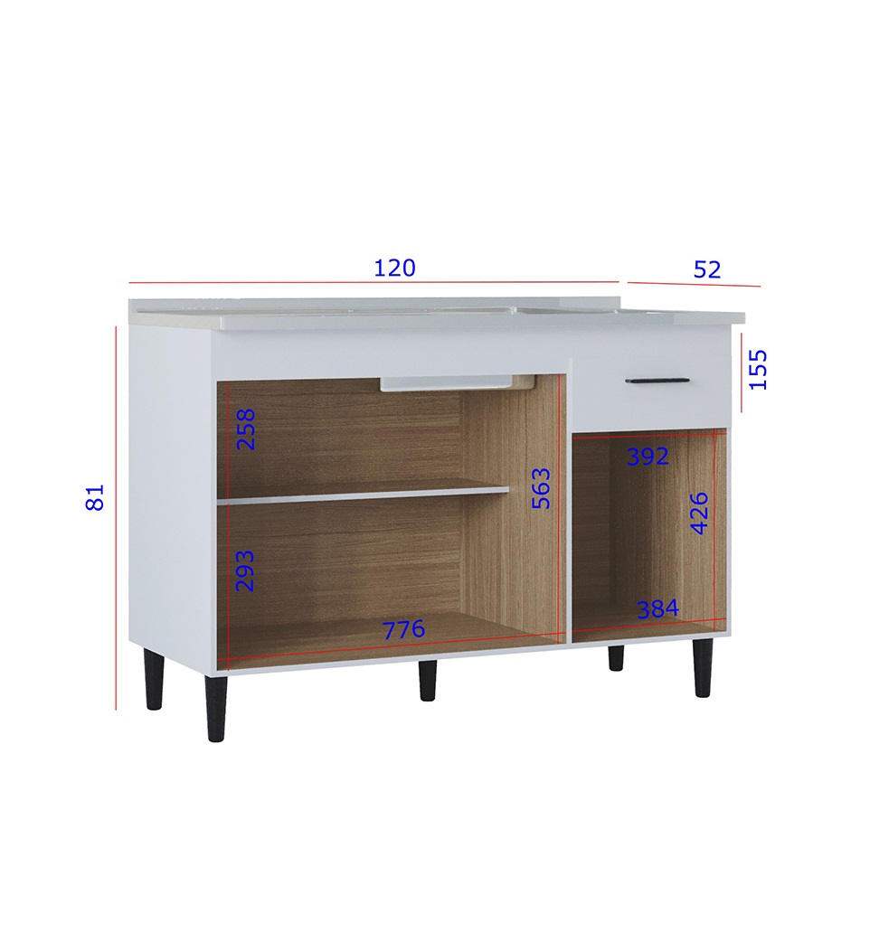 BAJO MESADA 3 PUERTAS Y 1 CAJON