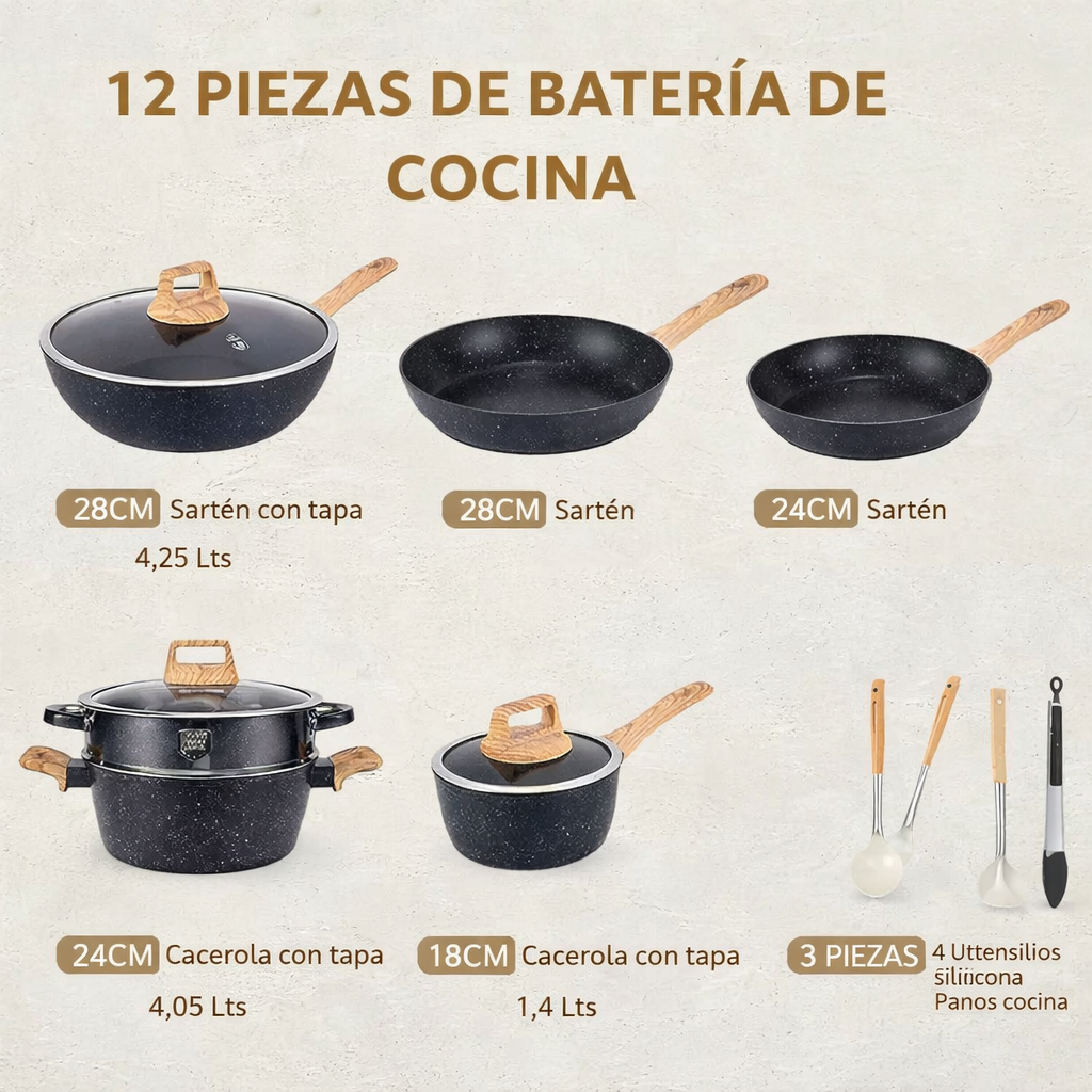 BATERIA DE COCINA 12 PIEZAS GRANITO