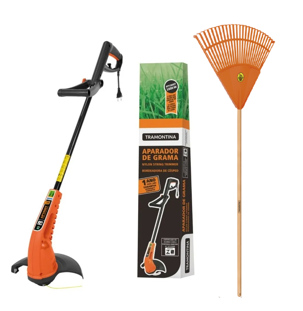 BORDEADORA 1000W 28 CM + ESCOBA TRAMONTINA 22 DIENTES 120 M