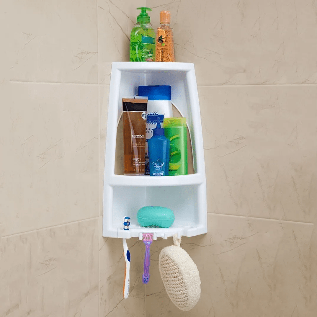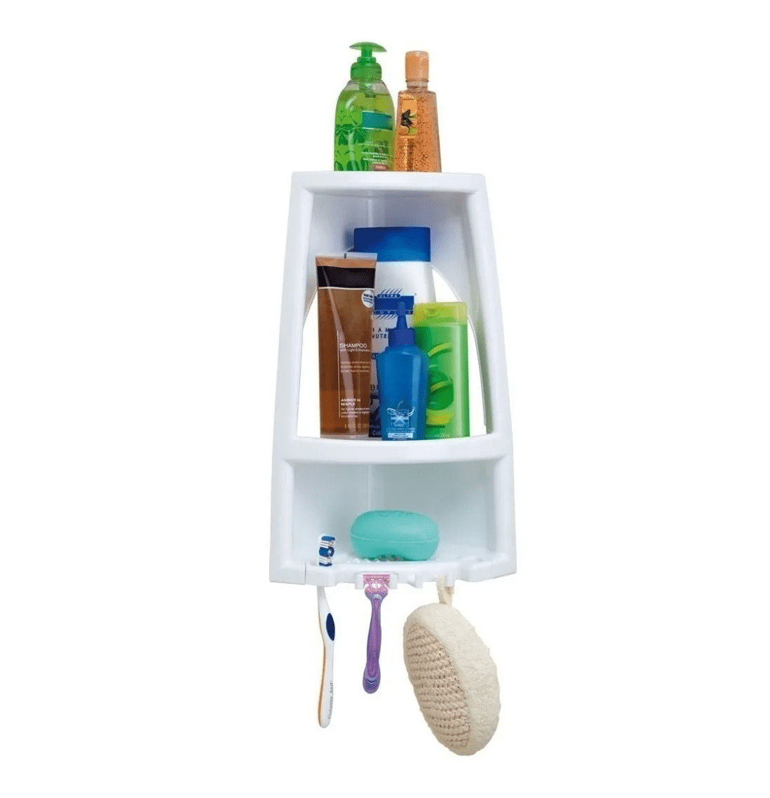 Práctico mueble esquinero ideal para optimizar el espacio en el baño y la ducha.