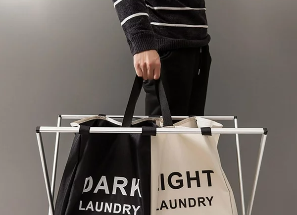 Novedoso organizador de ropa con 2 compartimientos de gran capacidad para poder separ ropa blanca de color, ropa interior, etc.