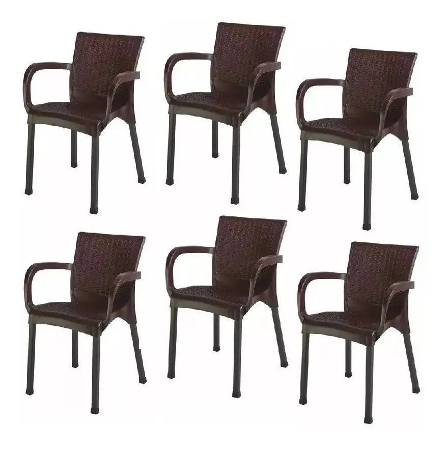 COMBO 6 SILLAS RATAN CON BRAZOS
