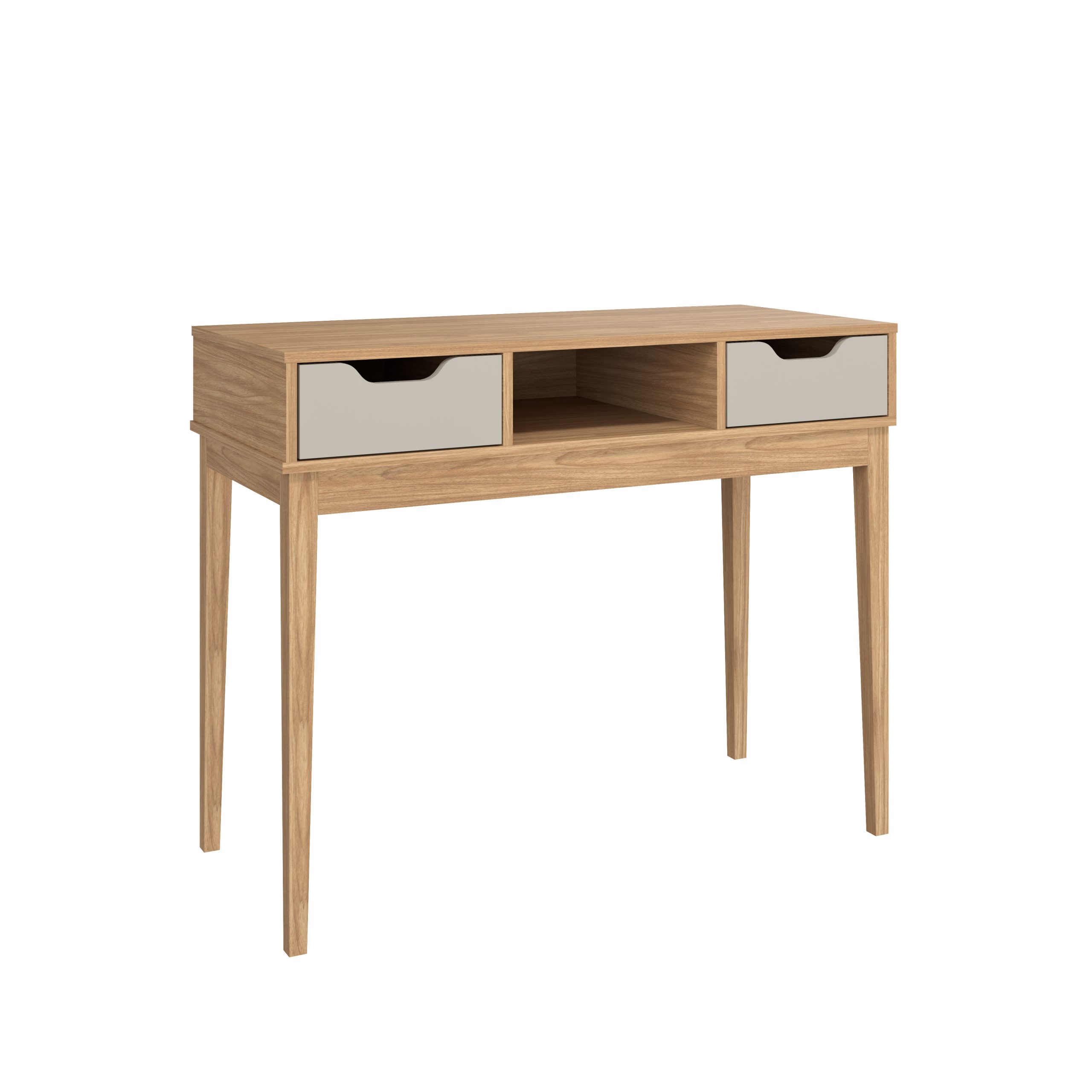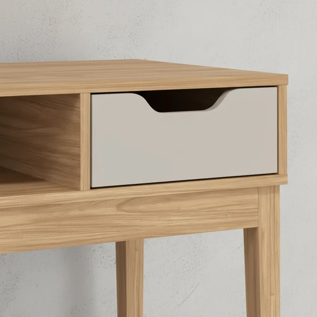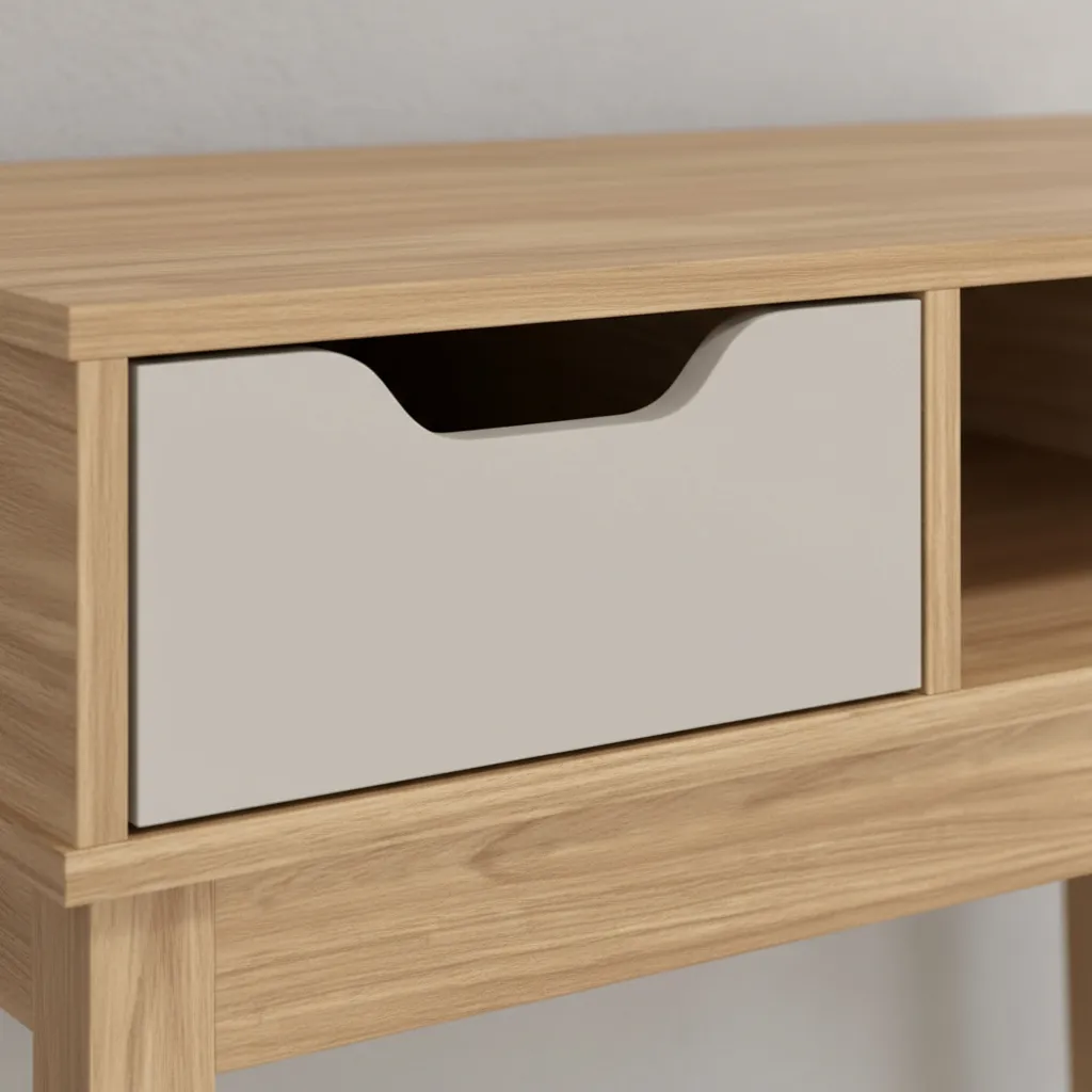 Este escritorio con 2 cajones combina un estilo moderno y elegante con la máxima funcionalidad. Sus sólidas patas de madera y el diseño limpio aportan calidez a cualquier rincón, mientras que sus cajones con correderas y nicho abierto te dan la organización que necesitas para enfocarte. Crea tu ambiente perfecto de trabajo o estudio.