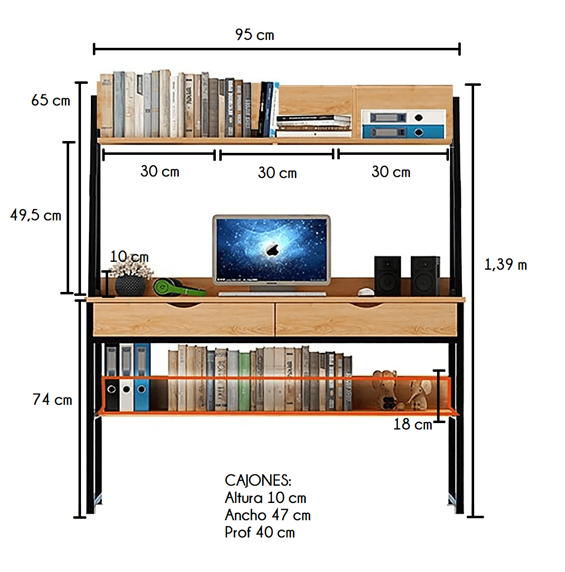 ESCRITORIO 2 CAJONES Y ESTANTES