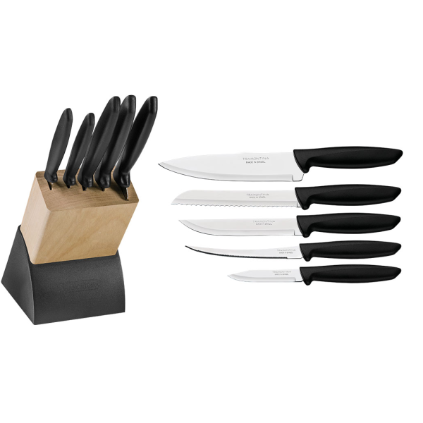 JUEGO 5 CUCHILLOS + TACO TRAMONTINA