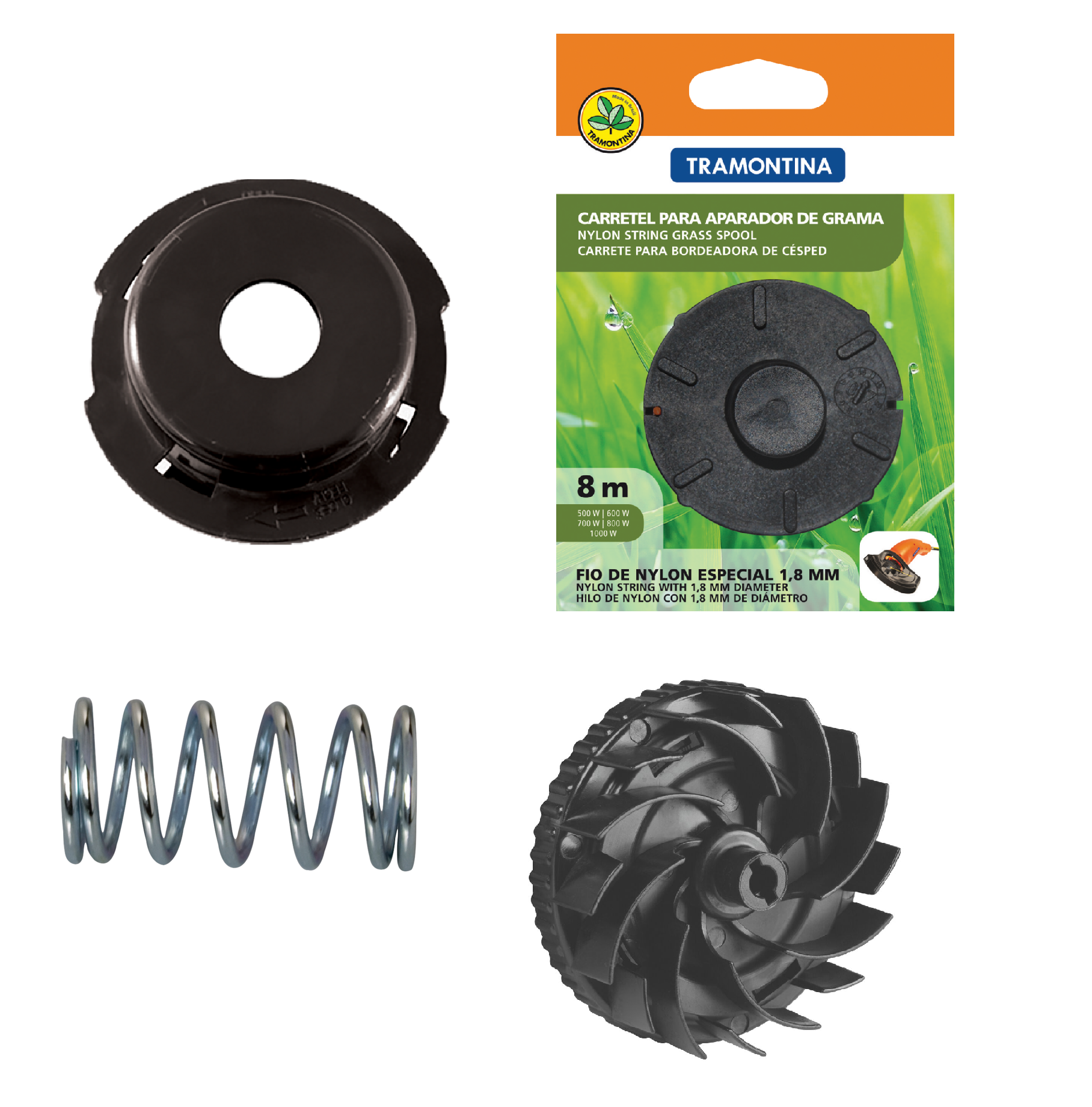 CARRETE CON HILO DE NYLON 1,8 MM + TAPA + PORTACARRETE + RESORTE