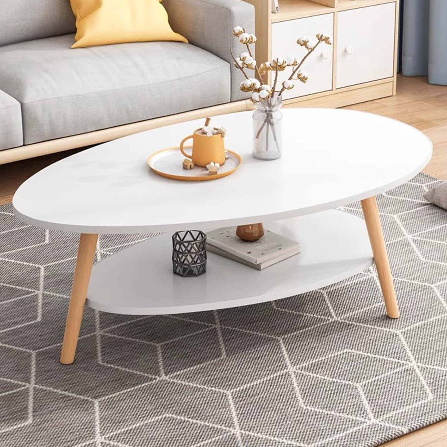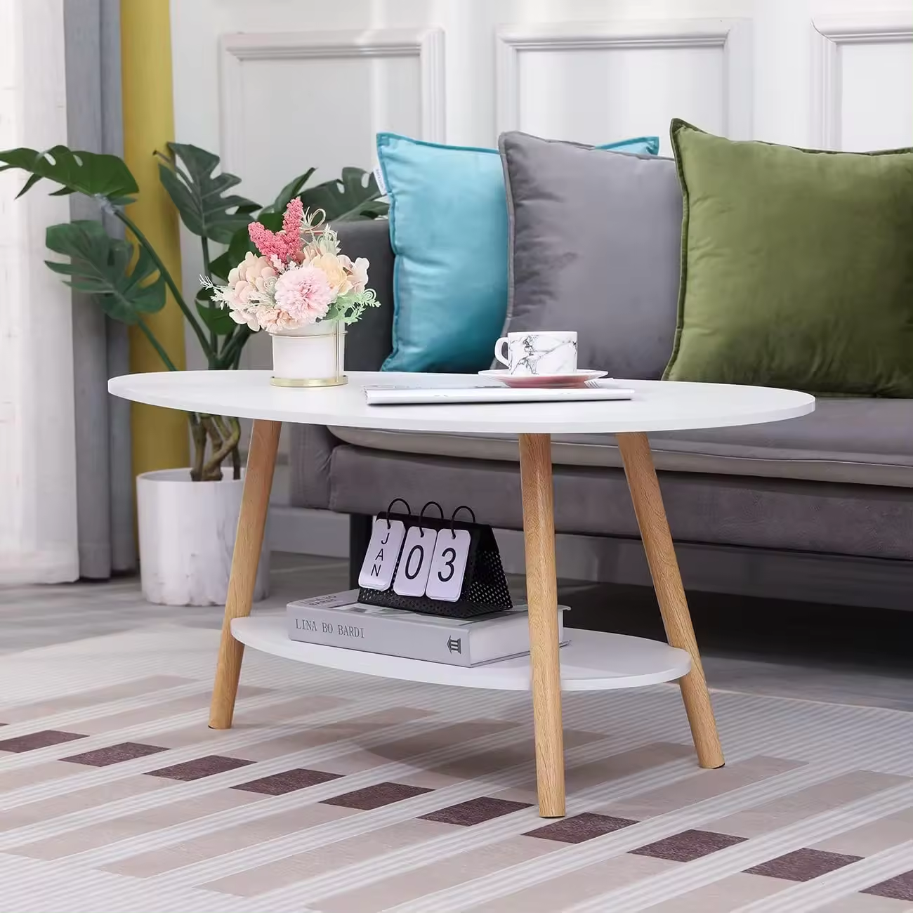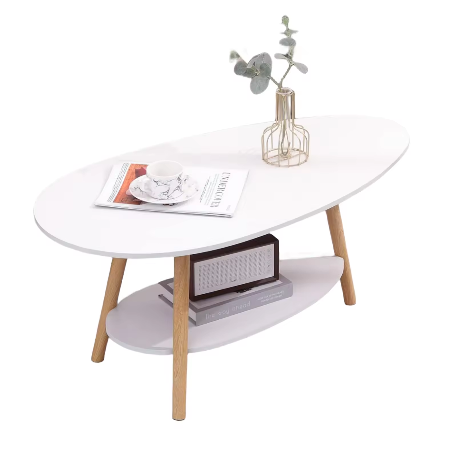 Muebles modernos minimalistas: esta mesa de centro ovalada en Madera Natural y MDP la convierte en el complemento contemporáneo perfecto para cualquier decoración de sala de estar.