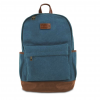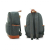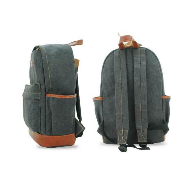 Mochila en tela canvas combinada con símil cuero, apertura superior y cierre. Bolsillo con cierre al frente y bolsillos en ambos costados.