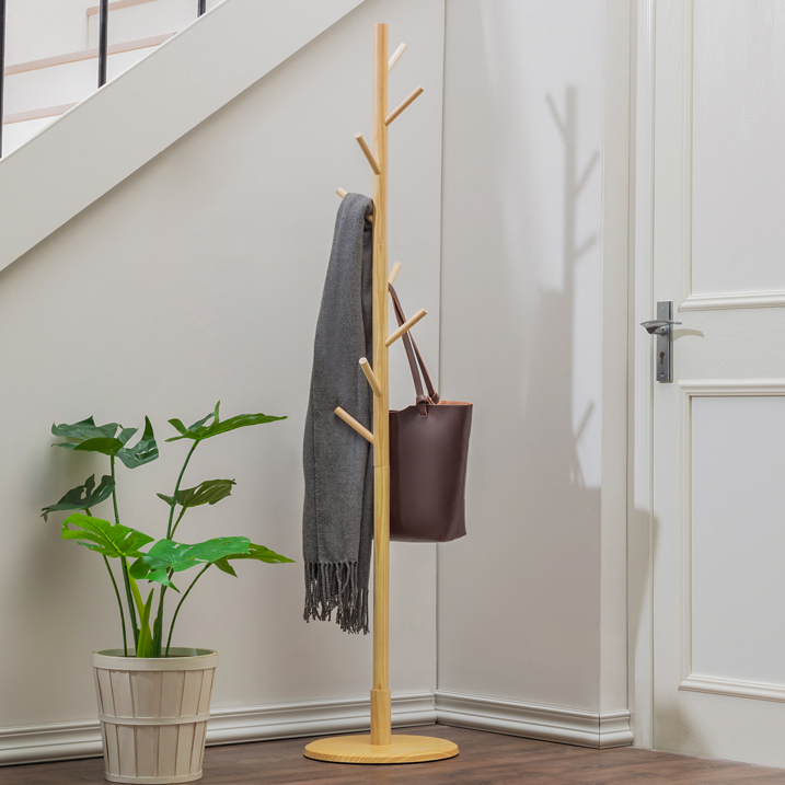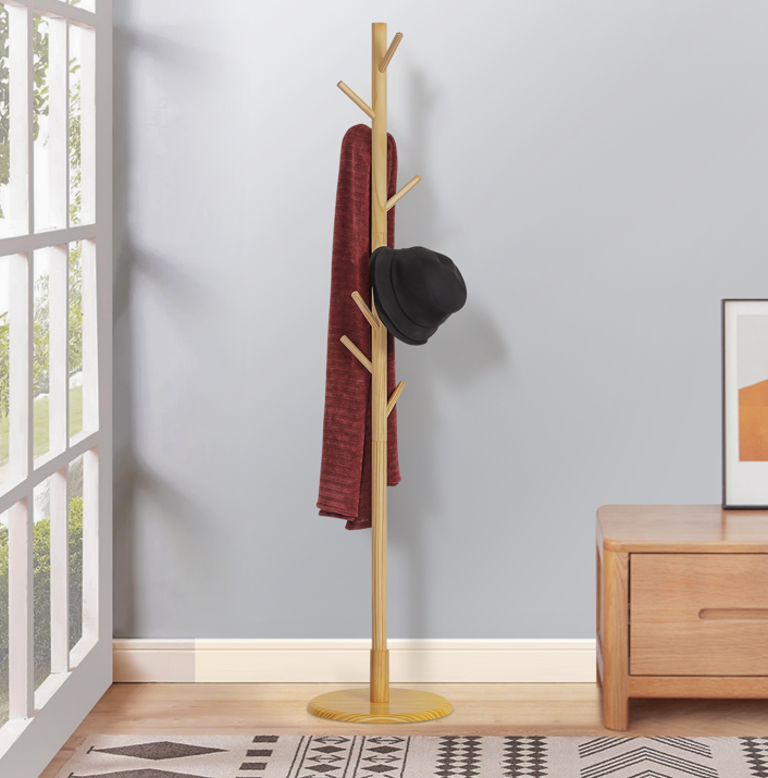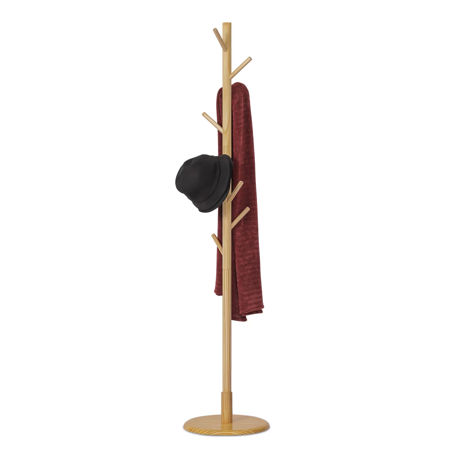 Perchero de pie funcional y decorativo, ideal para organizar abrigos, camperas, sombreros, bolsos y accesorios en entradas, dormitorios u oficinas. Su diseño tipo árbol aporta un toque moderno y natural, combinando practicidad con estilo.