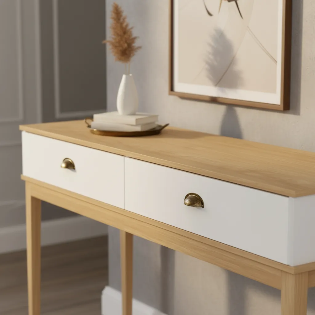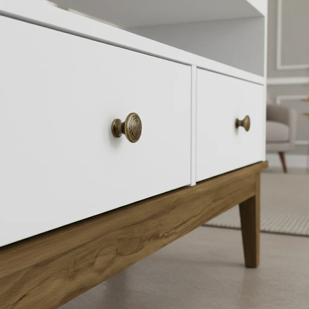 El Aparador Colonial de 2 cajones es la pieza clave para crear un ambiente con calidez y estilo inconfundible. Con la solidez de sus patas de madera maciza, es el toque de distinción que estabas buscando.