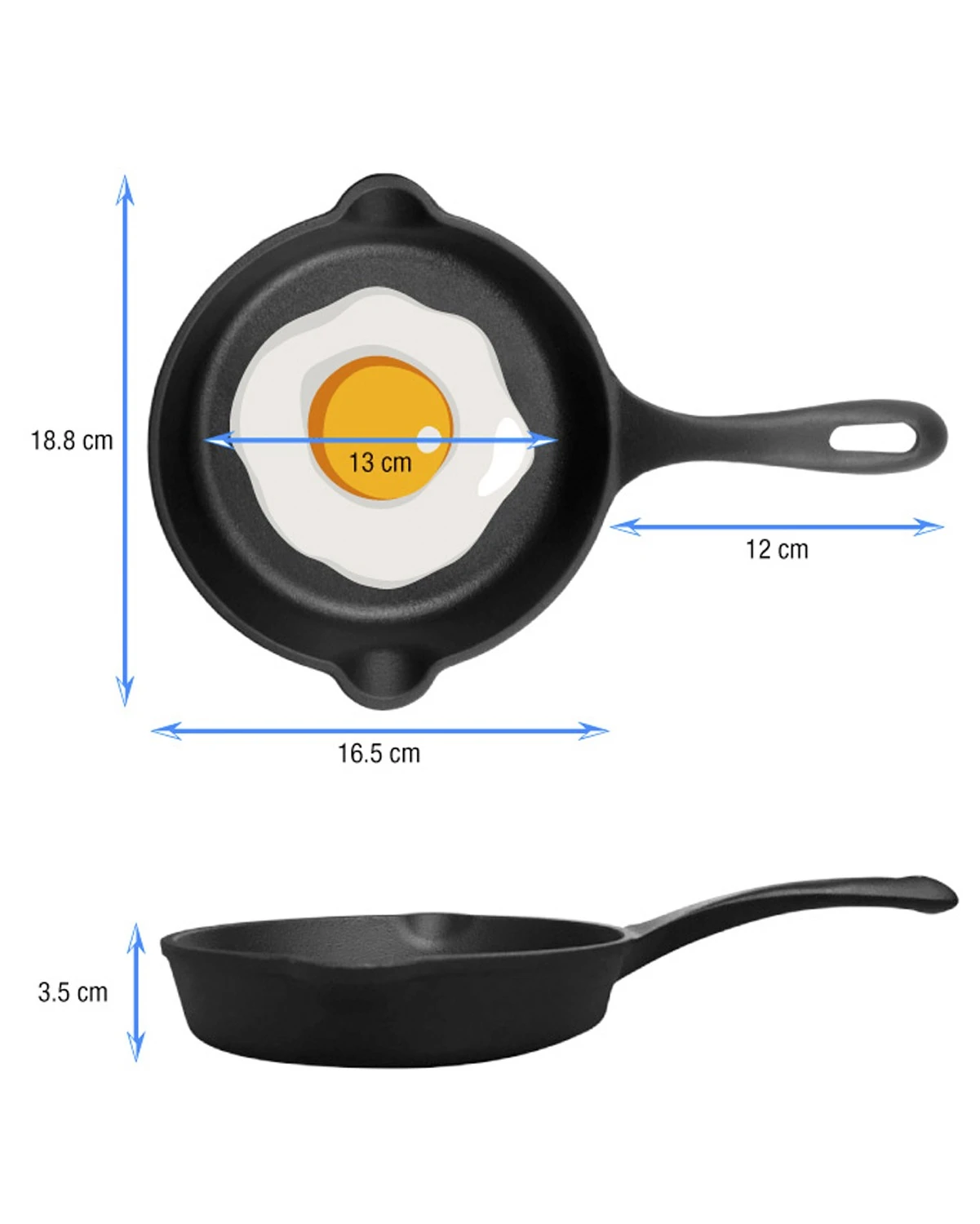 El sartén de hierro fundido de 16.5 cm es ideal para preparar huevos, desayunos y postres. Es perfecto en recetas de porciones personales y para servir directamente a la mesa. Disfruta de los beneficios del hierro fundido, como la distribución y retención del calor que permitirá una cocción uniforme de tus alimentos y los mantendrá calientes durante mucho más tiempo.