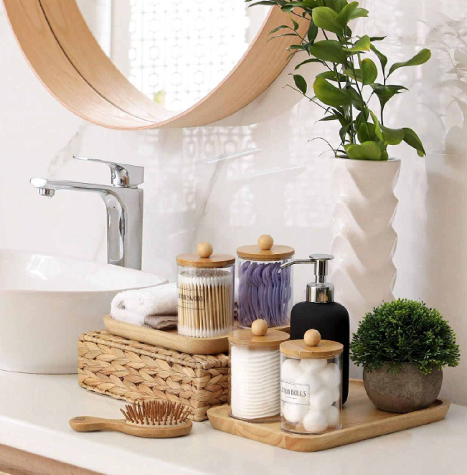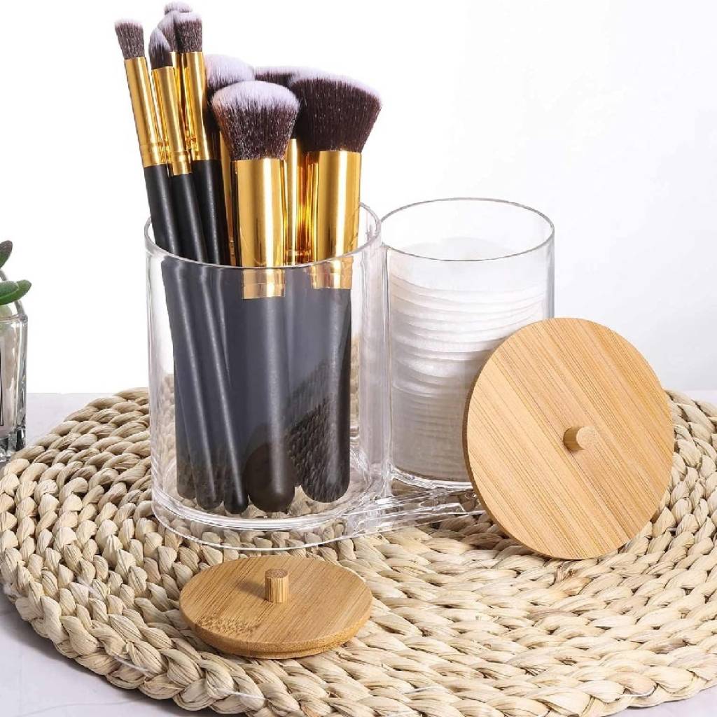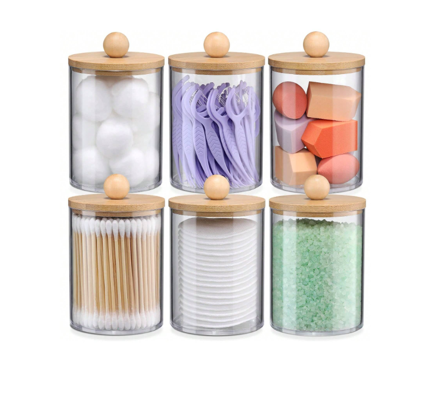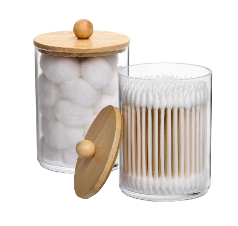 Set Organizador Baño Algodón Y Cotonete Con Tapa Bambú