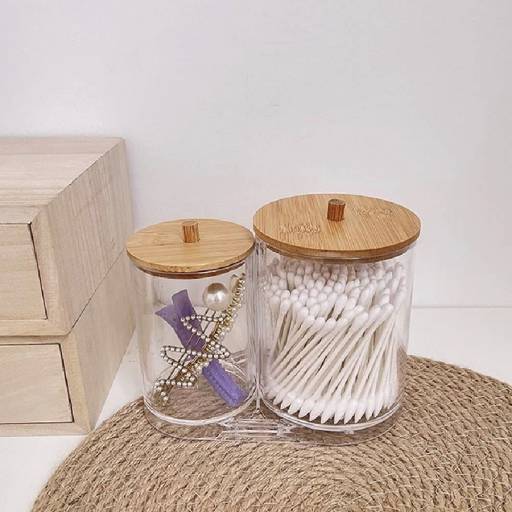 ¡Ahorra -16%! El artículo: Set Organizador Baño Algodón Y Cotonete Con Tapa Bambú puede ser tuyo solo por $450,00 $379,00.