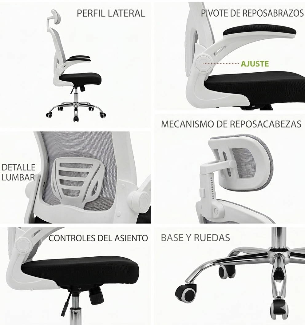 SILLA DE ESCRITORIO ERGONOMICA BLANCA